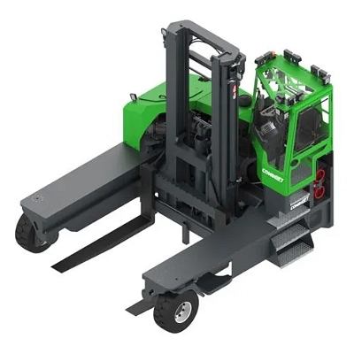 Sistemul de pozitionare a rotilor cu parghie in 4 directii C14000 de la Combilift este o caracteristica inovatoare care imbunatateste considerabil flexibilitatea si eficienta stivuitoarelor lor. Acest sistem permite operatorilor sa ajusteze cu usurinta pozitiile rotilor folosind o parghie, permitand stivuitorului sa se deplaseze inainte, inapoi si lateral, precum si in diagonala. Aceasta versatilitate este deosebit de avantajoasa pentru manipularea sarcinilor lungi si greoaie in spatii inguste sau restranse, deoarece faciliteaza manevrarea precisa si eficienta.
